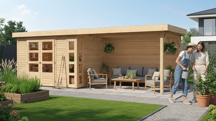 dřevěný domek KARIBU KERKO 5 + přístavek 280 cm včetně zadní stěny (9206) natur LG2991Německá kvalita od prémiového německého výrobce Karibu Holztechnik GmbH.