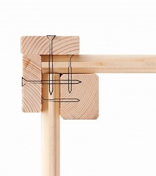 Pozor, balík s materiálem není vodotěsný. Folie chrání dřevo jen proti znečištění. Skladujte proto stavební sadu až do konečné montáže v suchu, ne přímo položenou na zemi, chráněnou proti vlivům počasí (vlhkost, slunce atd.). Neskladovat ve vytápěném prostoru!