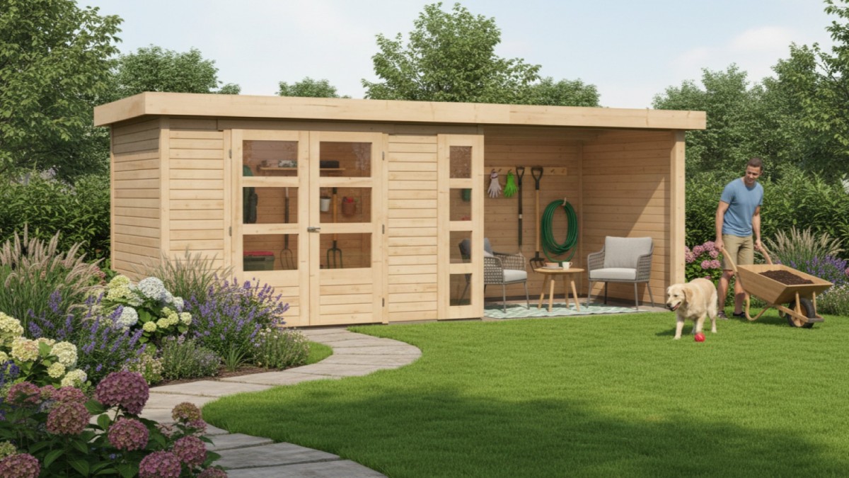 dřevěný domek KARIBU KERKO 4 + přístavek 240 cm včetně zadní a boční stěny (82942) natur LG2973Německá kvalita od prémiového německého výrobce Karibu Holztechnik GmbH.